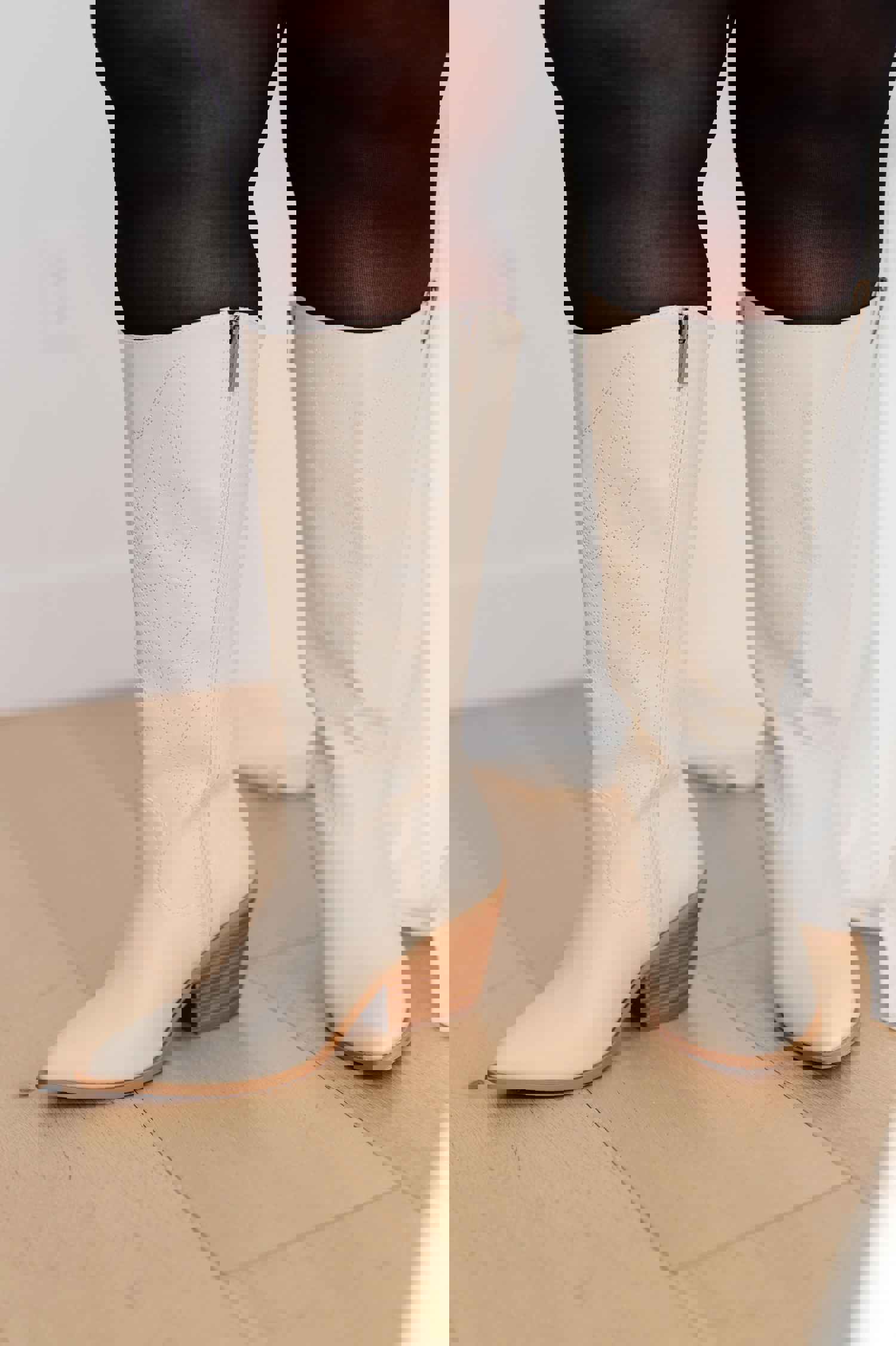 Wide Calf Embroidered Western Boots Low Heel Knee High Riding Boots