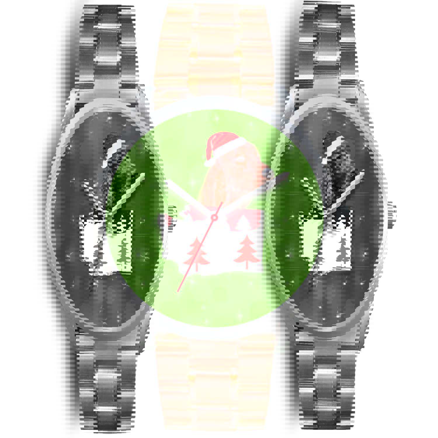 Brittany Dog Georgia Christmas Special Wrist Watch - Japanese Movement, Genuine Leather/Stainless Steel Band