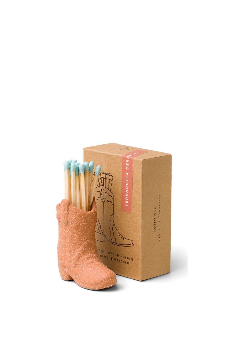 Vintage-Inspired Terracotta Cowboy Boot Match Holder with Safety Matches