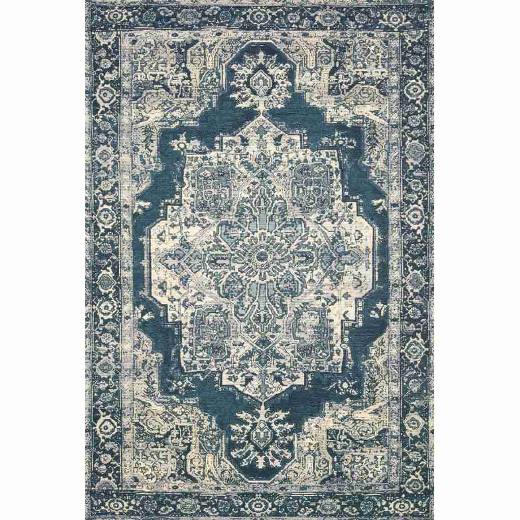 ORNAMENTAL BLUE FLOWER & YELLOW-GREEN - SHEER Window Curtain