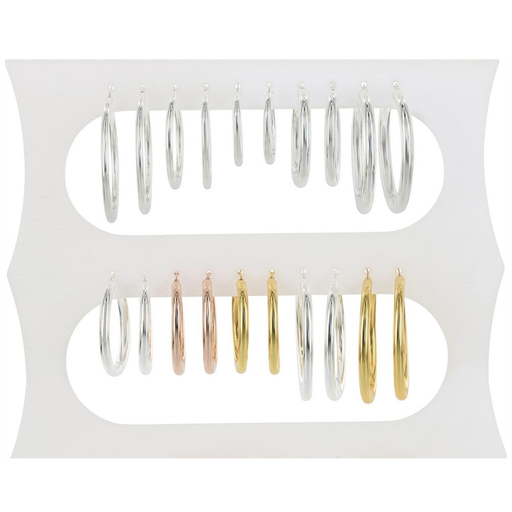 USE COL 047 Sterling Silver, Rose and Gold Plated High Polish Hoop Earrings, 10 Pair Display