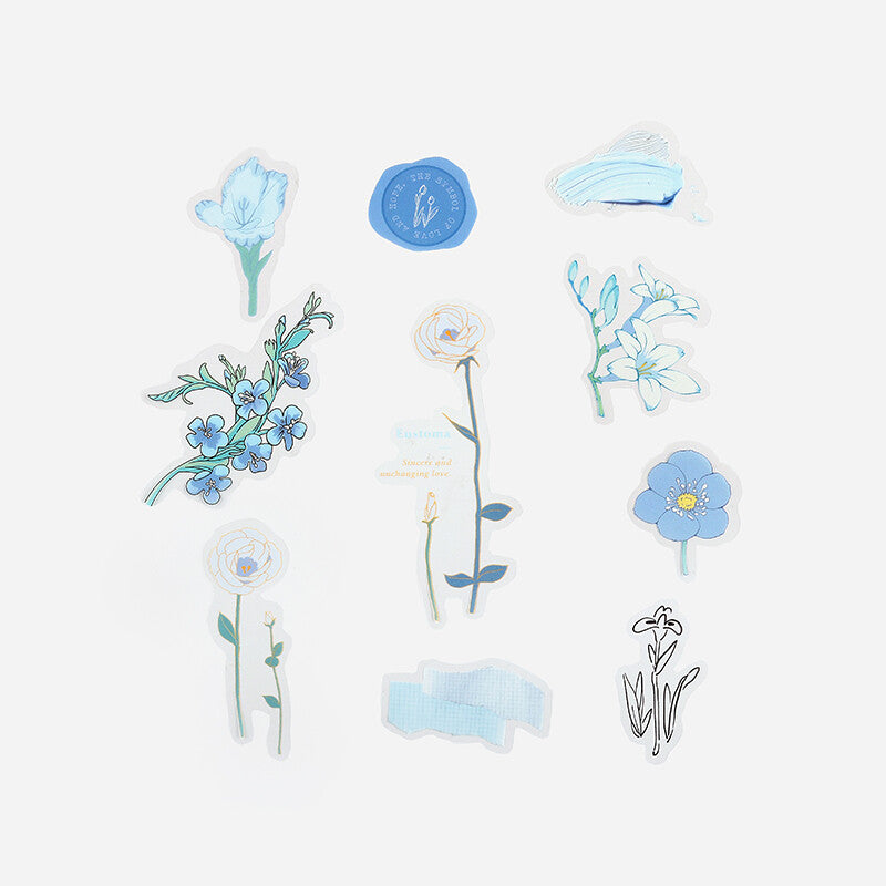 The Flowers Bloom Blue PET Flake Sticker (30 pieces)
