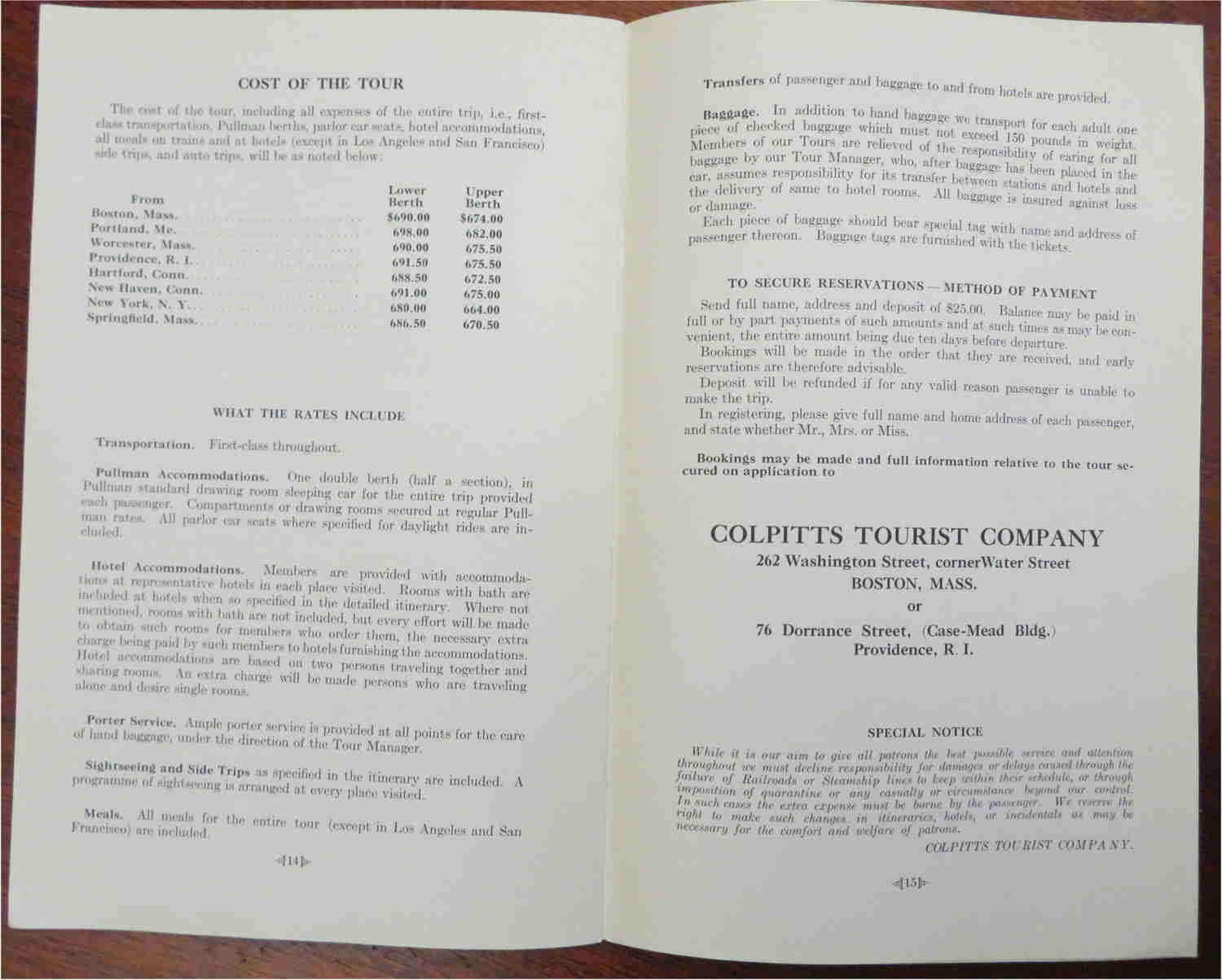 California Tour Colpitts Tourist Company 1930 Itinerary Illustrated Advert Book