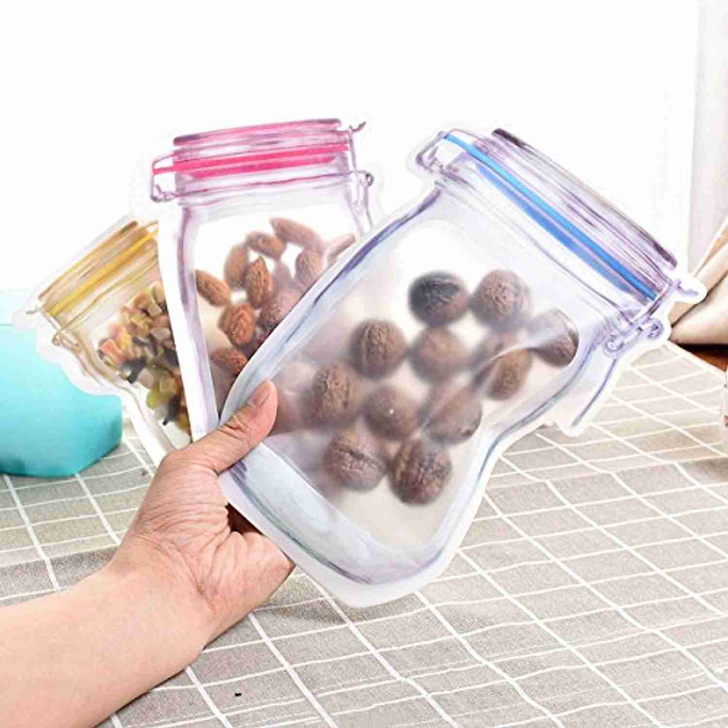 Total 18 Pieces Mason Jar Pattern Zipper Airtight Seal Bags Set - Reusable Food Storage Bags for Travel, Picnic, Camping