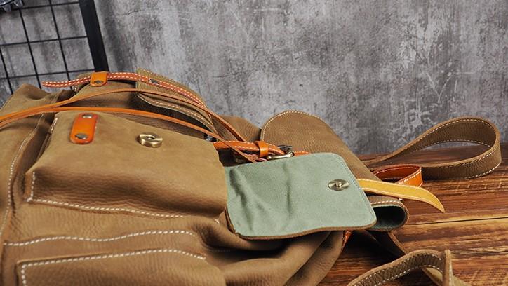 Tan Cool Mens Leather Backpack Travel Backpack Leather Hiking Backpack for Men
