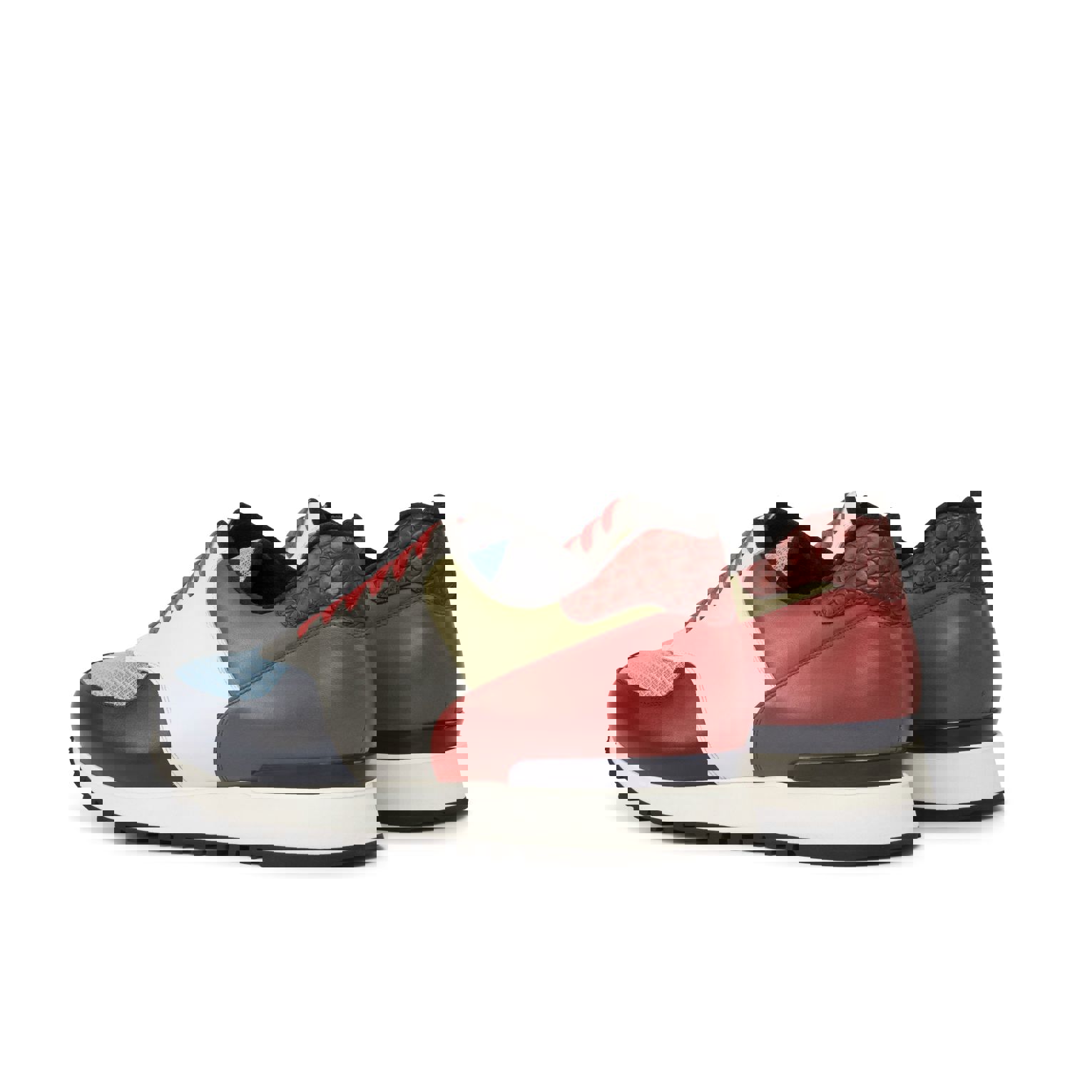DapperFam Veloce Mens Italian Leather & Croco Embossed Jogger in Navy/White/Olive/Red