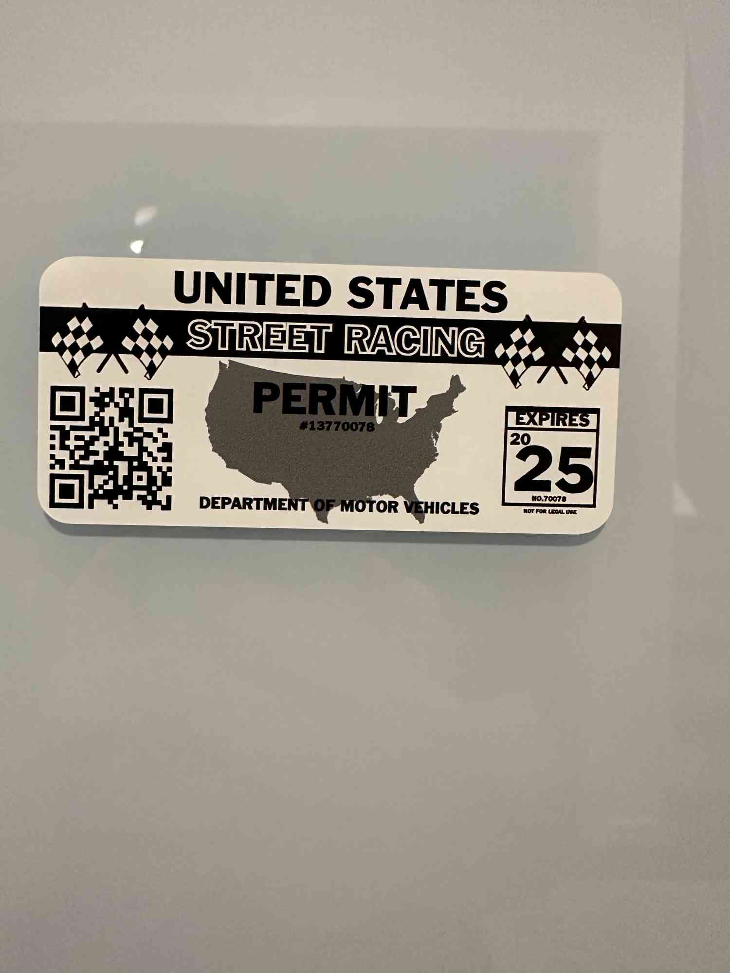 United States Street Racing Permit Car Vinyl Decal Funny Sticker