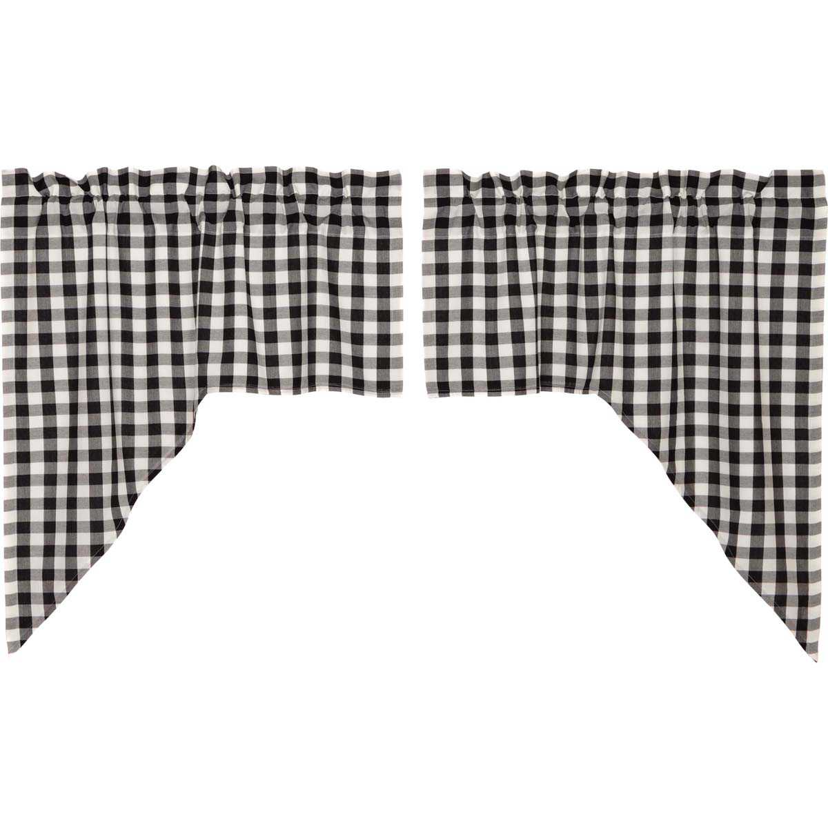 Sable Ann Buffalo Check Swag Curtains - Black and White Cotton Lined Window Decor