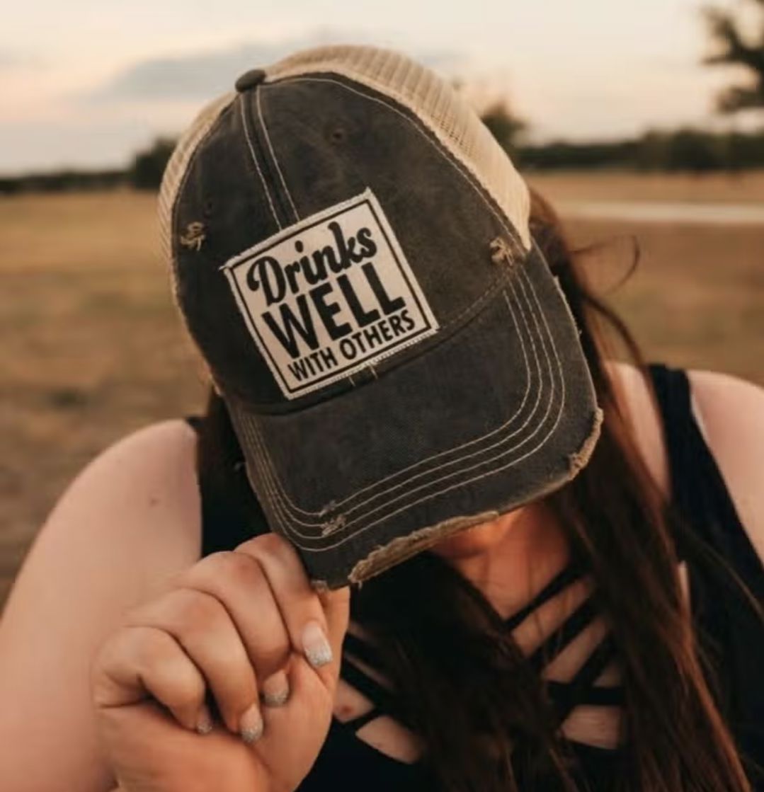 Drinks Well With Others Vintage Distressed Trucker Cap