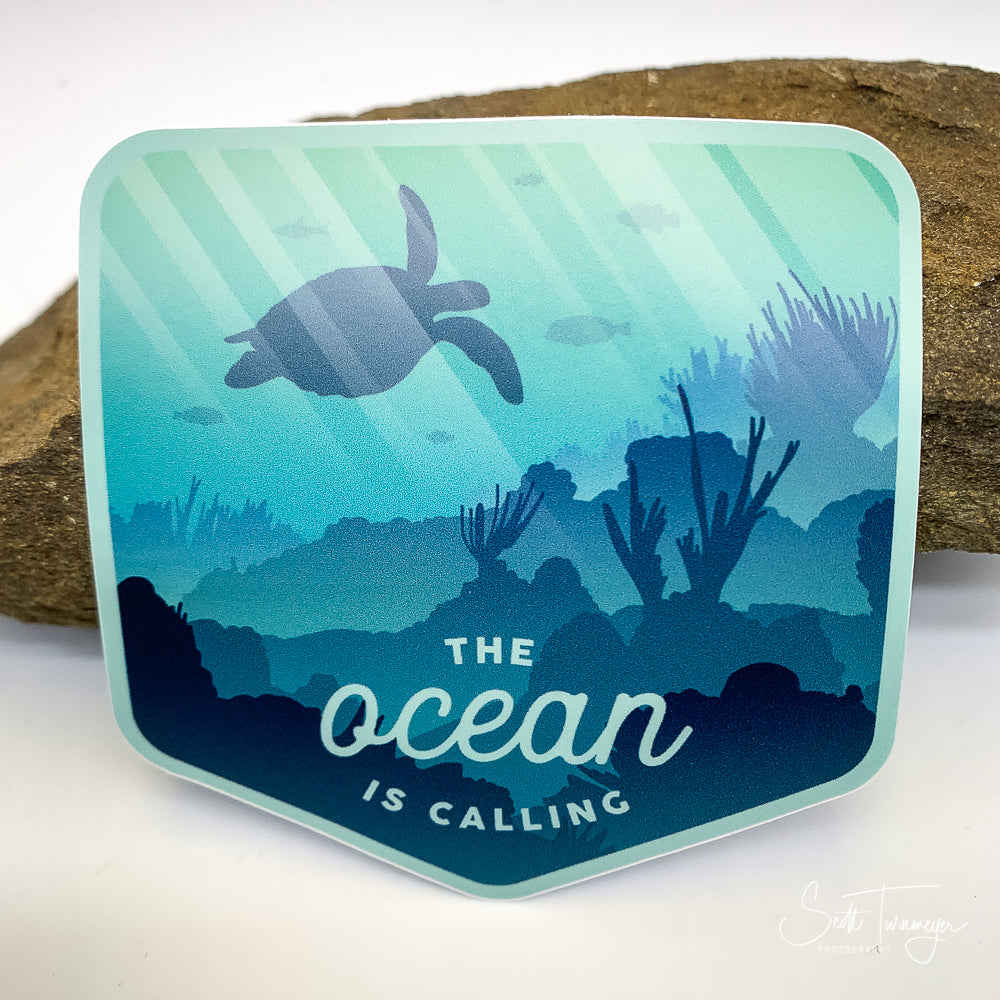 The Ocean Is Calling Turtle Vinyl Sticker Decal