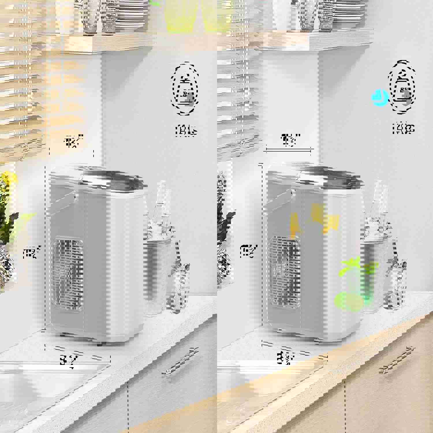 Countertop Ice Maker with Self-Cleaning, 9 Cubes in 6 Mins, 26Lbs/24Hrs, 2 Ice Sizes for Home Kitchen Office Bar Party, Silver