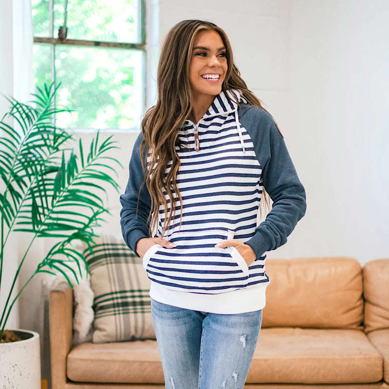 Wanakome Faith Half Zip Hoodie - Navy Stripe