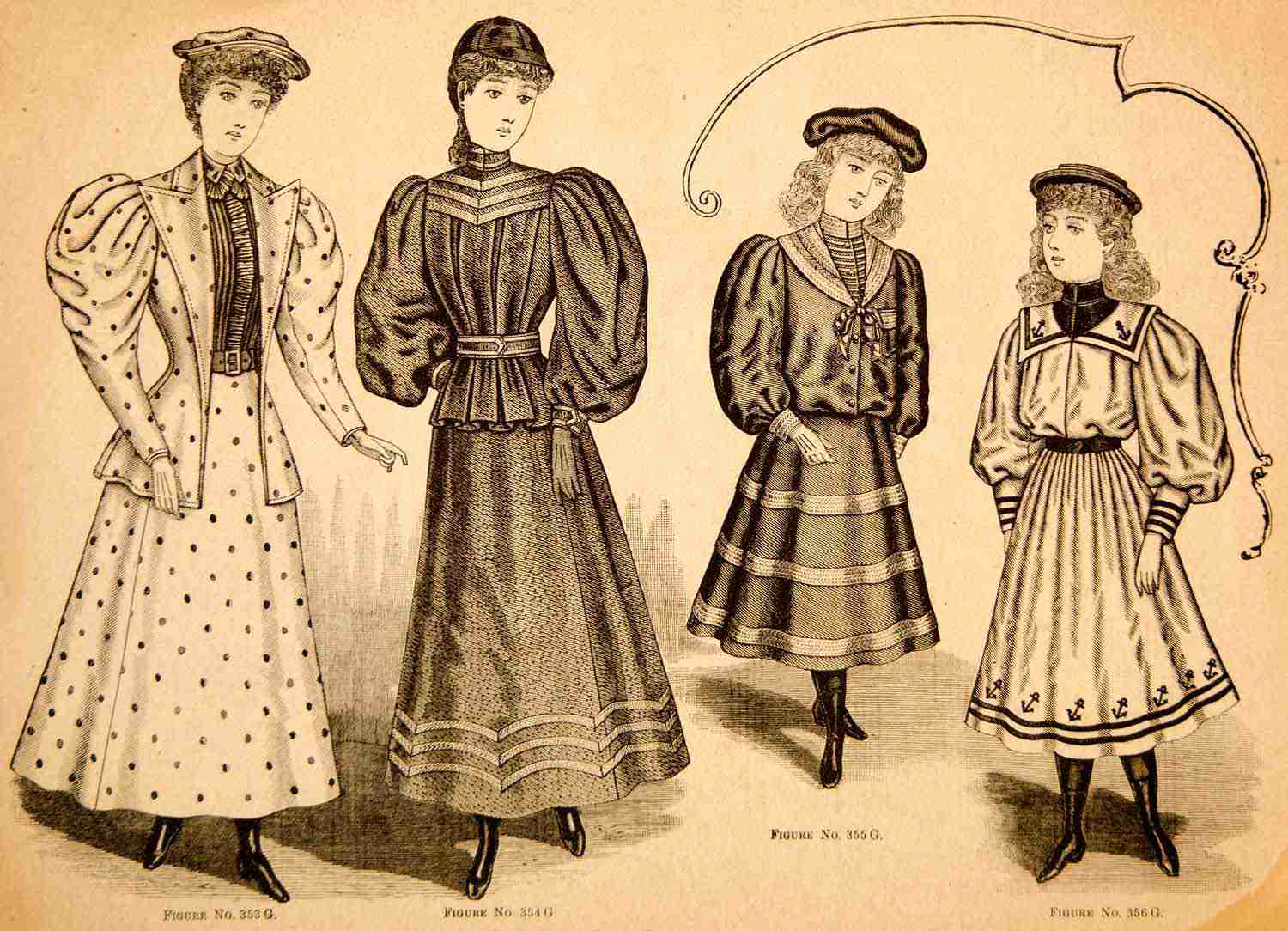 1889 Victorian Women Fashion Dress Wood Engraving - Original Costume Print
