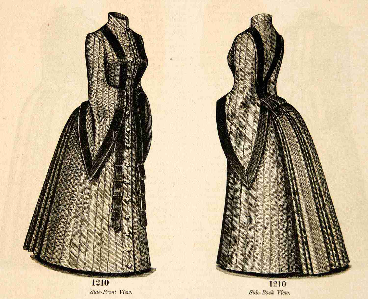 1886 Victorian Woman Gown Clothing Costume Fashion Bustle Wood Engraving
