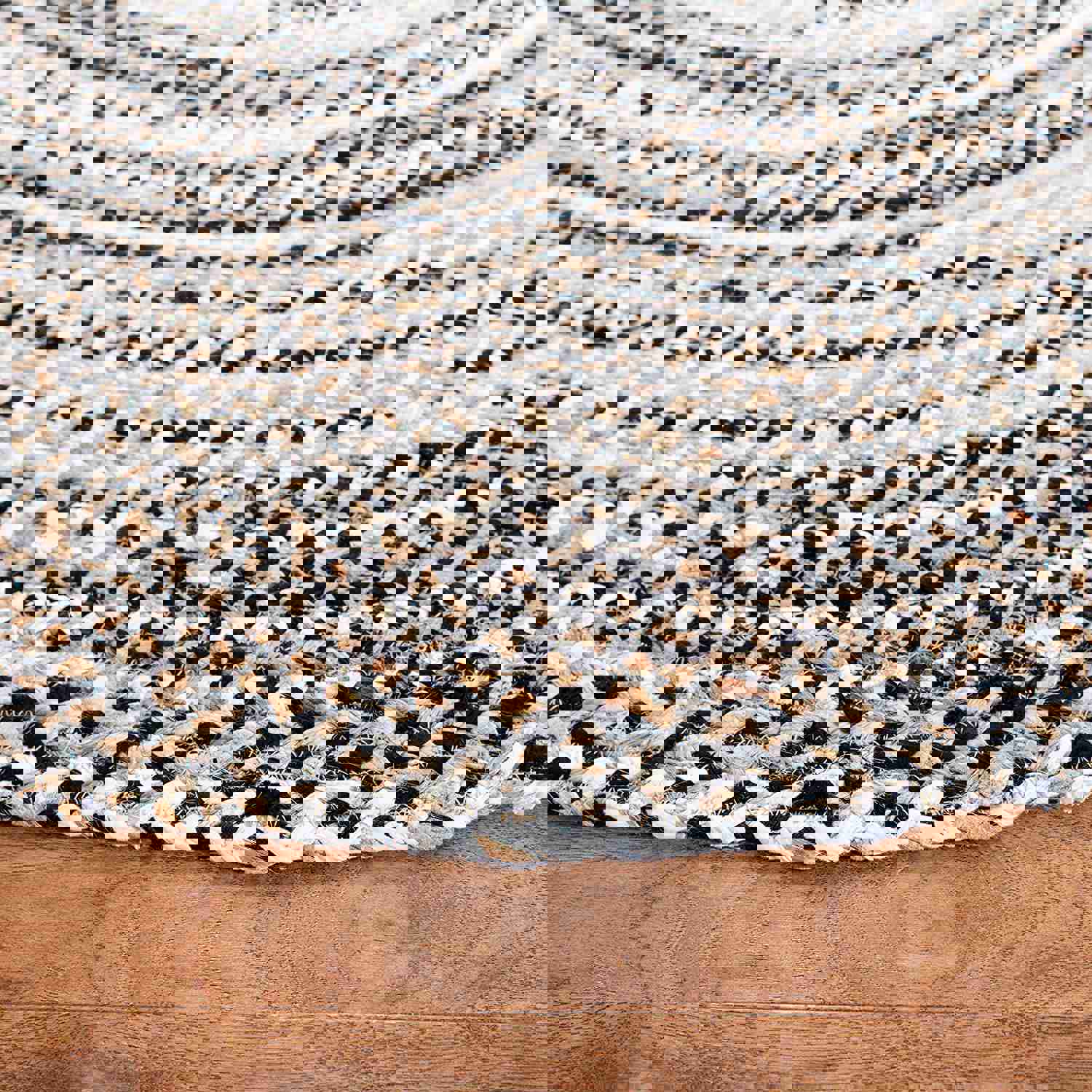 Ivory White Black & Beige Round Braided Jute Rug | Jaipur Handloom