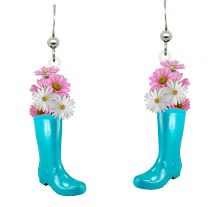 Floral Boot Earrings #2558 - Handmade Stainless Steel with Glitter Finish