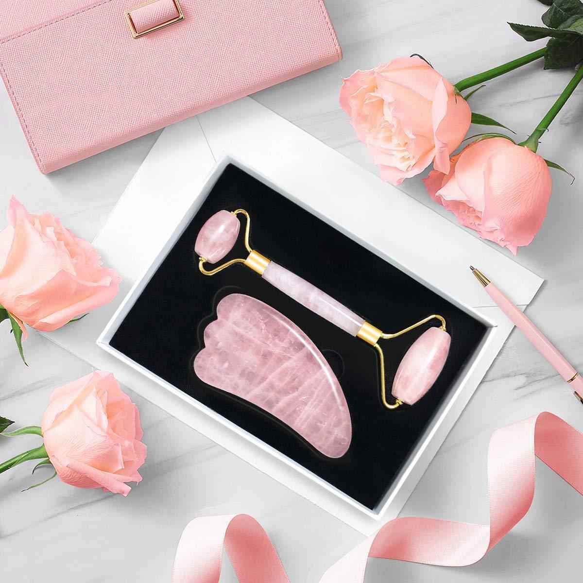 Rose Quartz Jade Roller & Gua Sha Set - Anti-Aging Facial Massage Tool for Slimming & Skin Care
