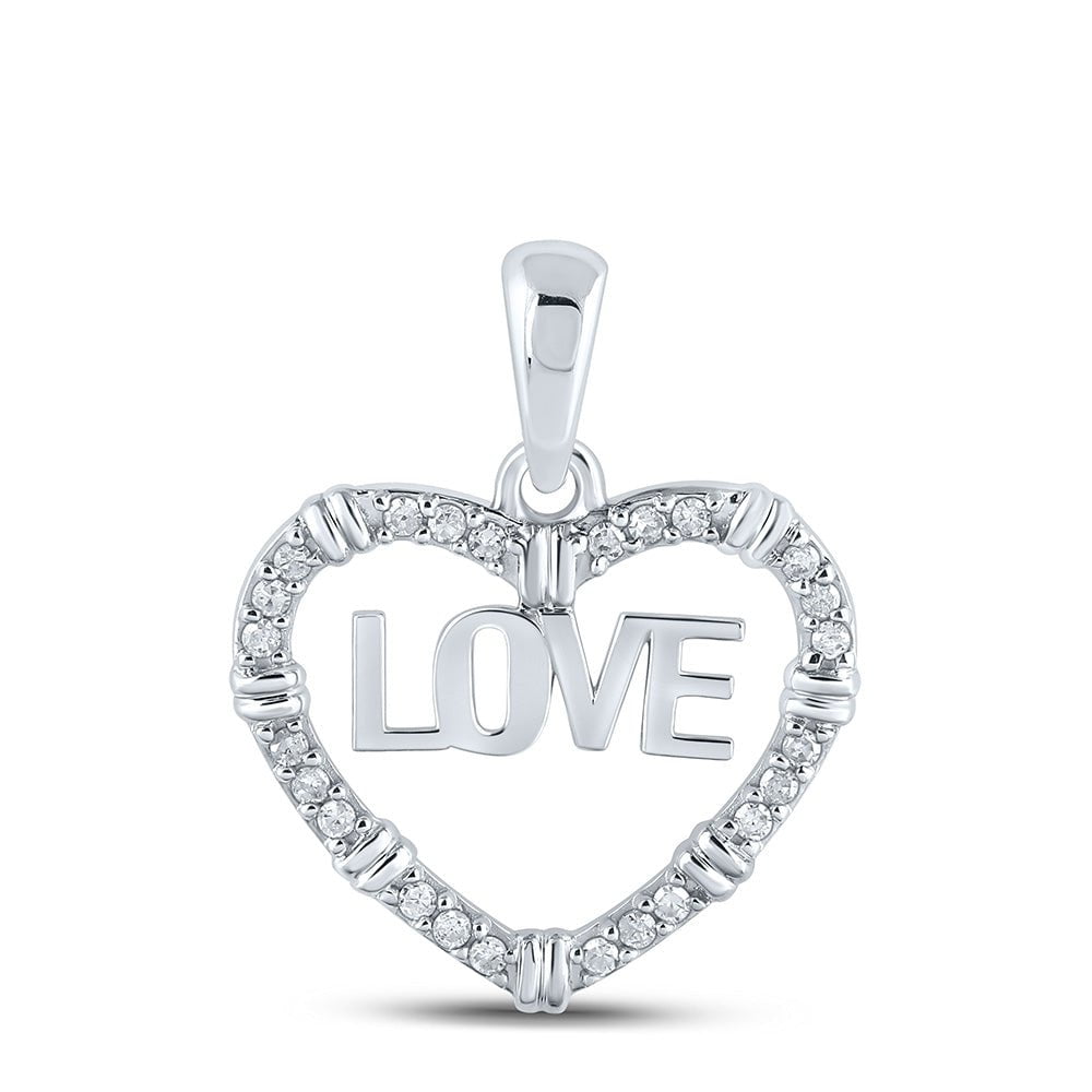 10kt White Gold Women's Round Diamond Love Heart Pendant (1/6 Ct.t.w.)