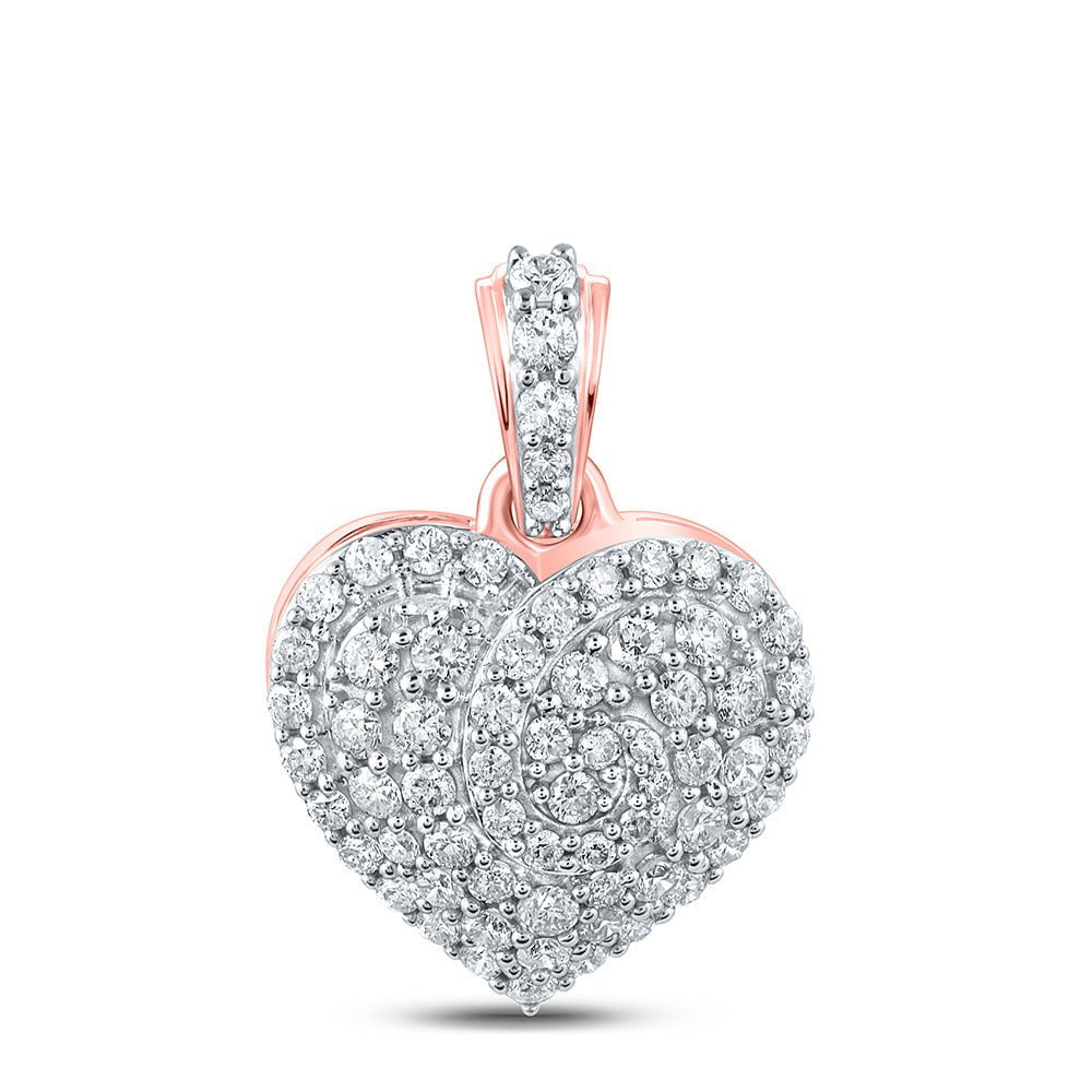 10kt Rose Gold Women's Round Diamond Heart Pendant (7/8 Cttw)