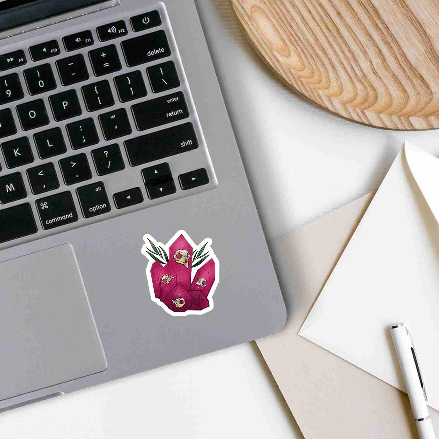 Pink Bird Skull Crystal Vinyl Sticker - Waterproof & Durable