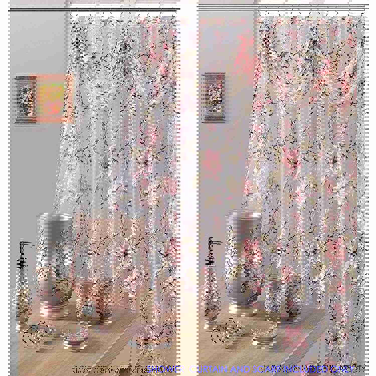 Melrose Sheer Printed Floral Shower Curtain with Scarf, Pink, 70x72 Inches