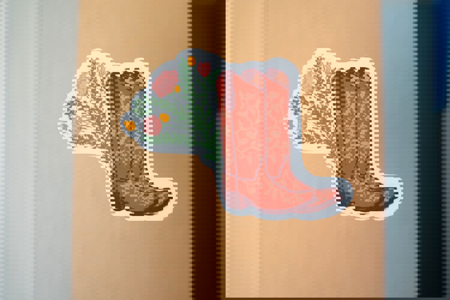 Cowgirl Boots with Bouquet Vinyl Sticker