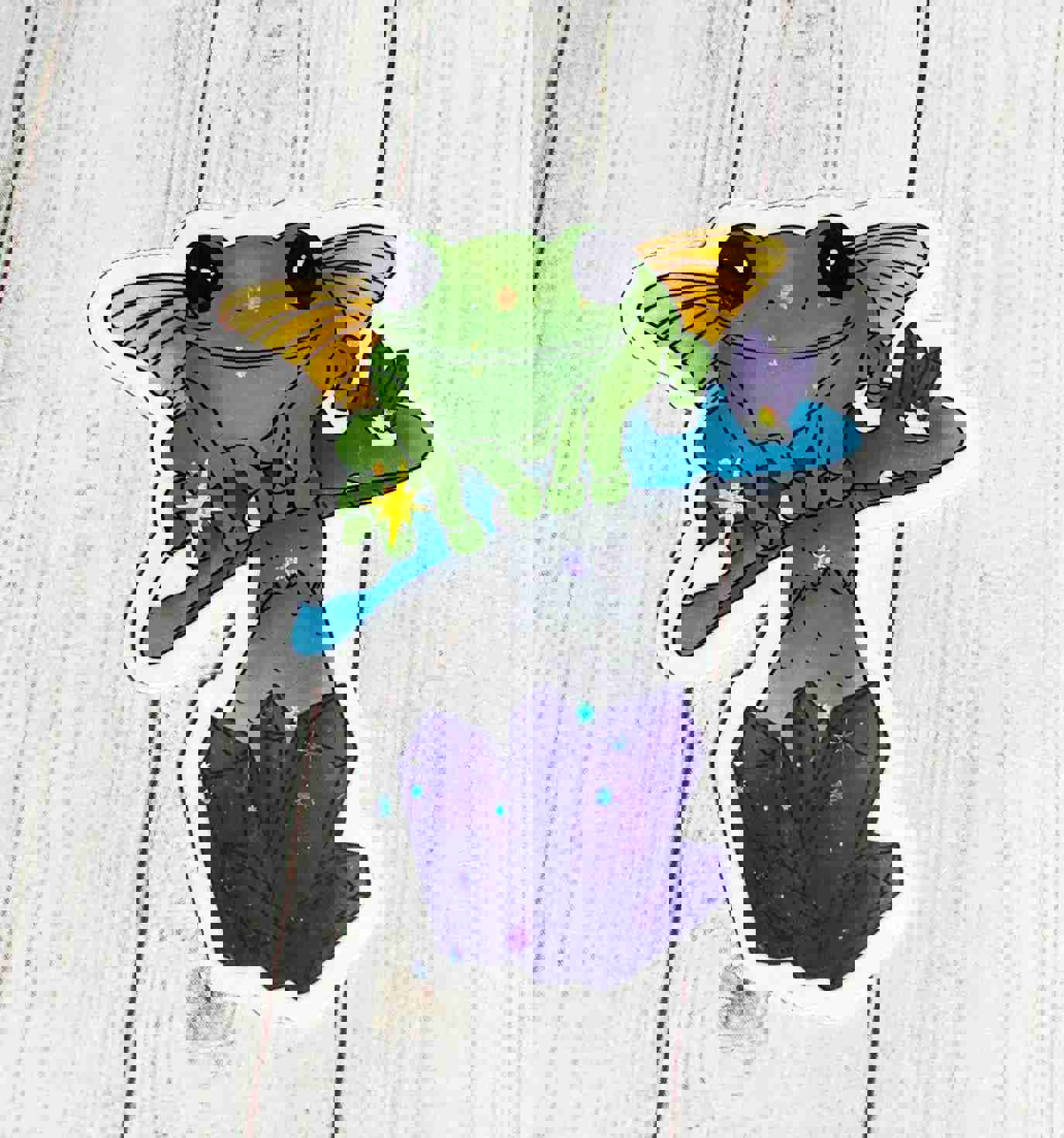 Fairy Frog on Blue Mushroom Vinyl Sticker - Waterproof