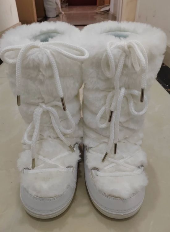 Women's Winter Snow Boots with Fluffy Fur, Lace-Up, Non-Slip Waterproof Ski Boots