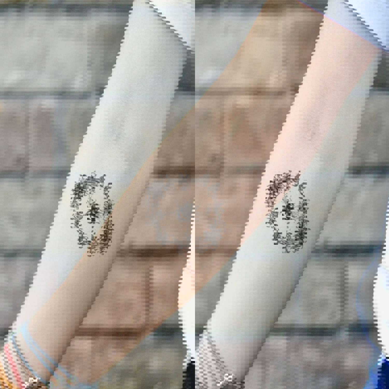 Bee And Flower Temporary Tattoo Sticker (Set of 2)