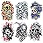 Kotbs 6 Sheets Black Tribal Realistic Animal Flower Temporary Tattoos for Men and Women