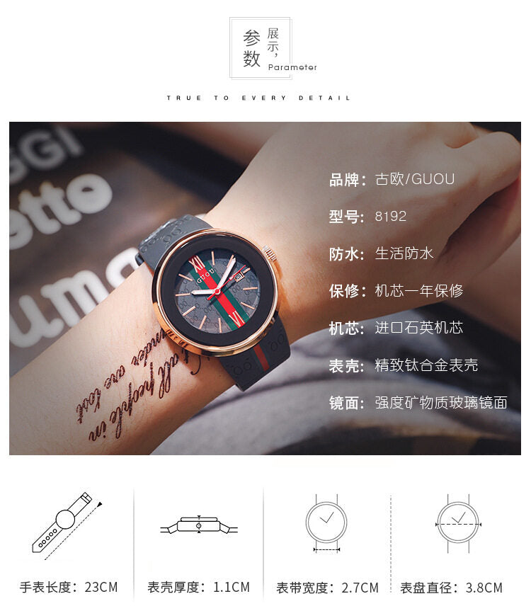 Guou 8192 Big Dial Fashion Quartz Watch for Men - Neutral Trendy Student Couple Watch