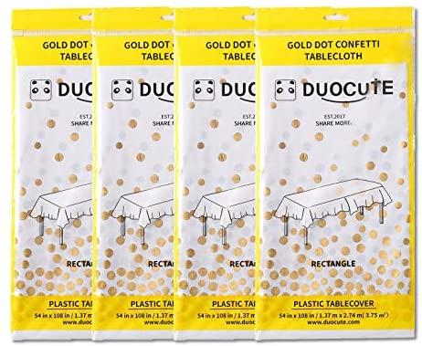 Duocute White Disposable Party Tablecloth with Gold Stamping Dots, 54 x 108 Inches, Pack of 4