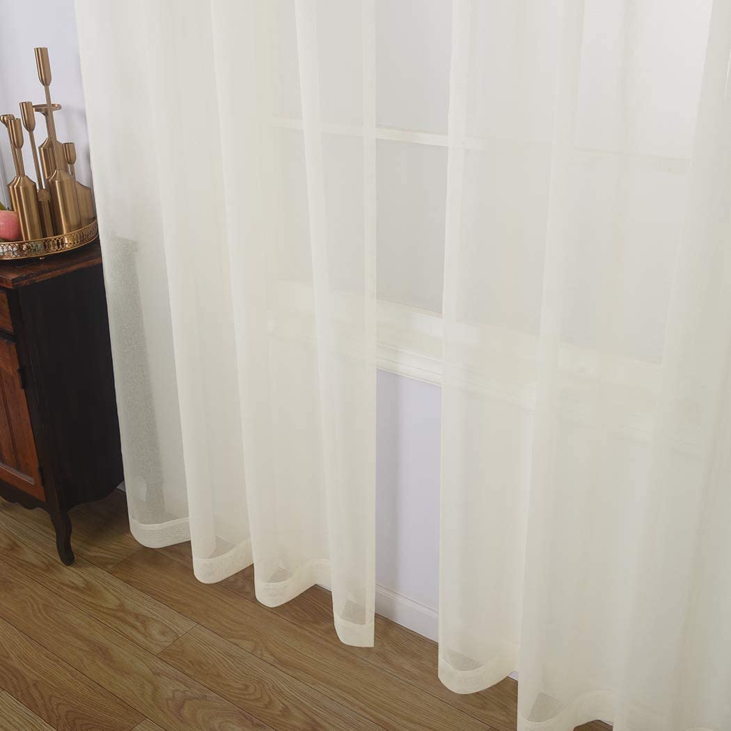 Sheer Curtains for Living Room and Bedroom - Semi Crinkle Voile Extra Wide Drapes