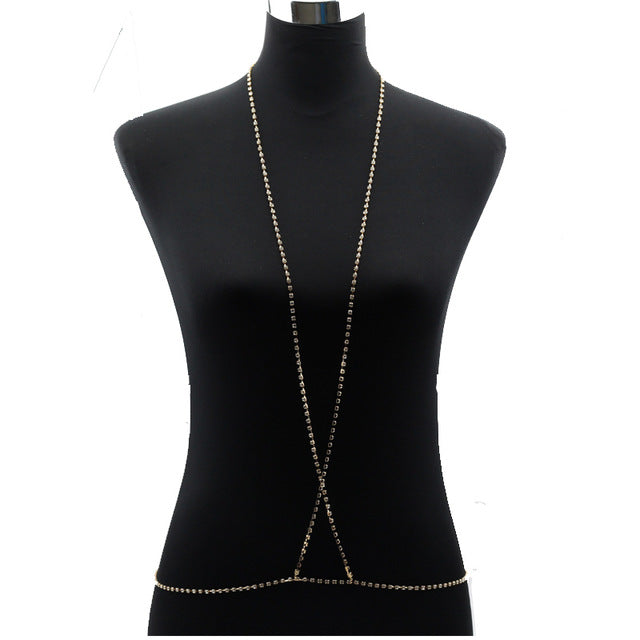 Sexy Chains Necklace Women Harness Bra Sparkle Body Necklace Chain Statement Crystal Necklace Fashion Jewelry