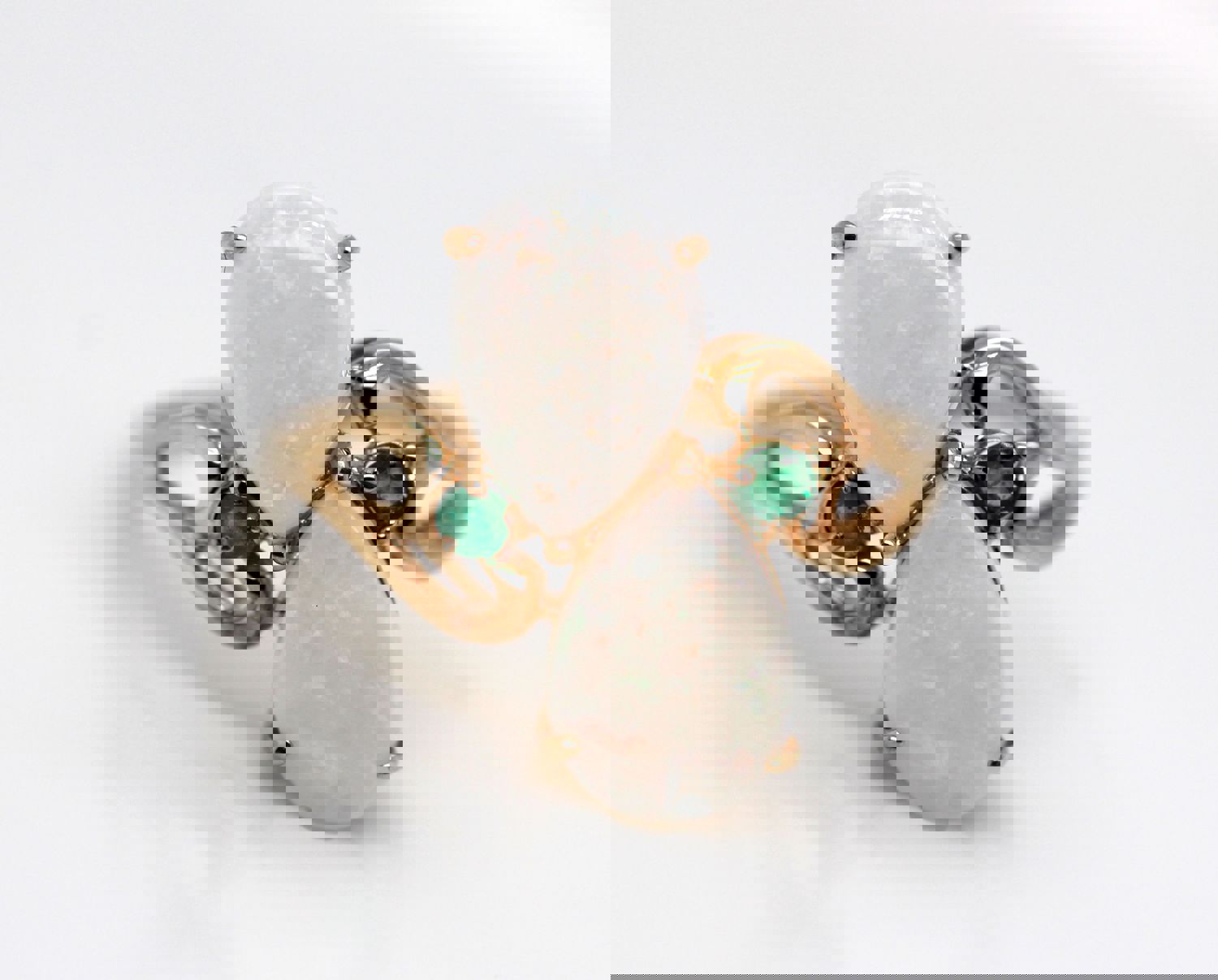 ESTATE 10KY 1.50 CTTW OPAL AND .04 CTTW EMERALD RING