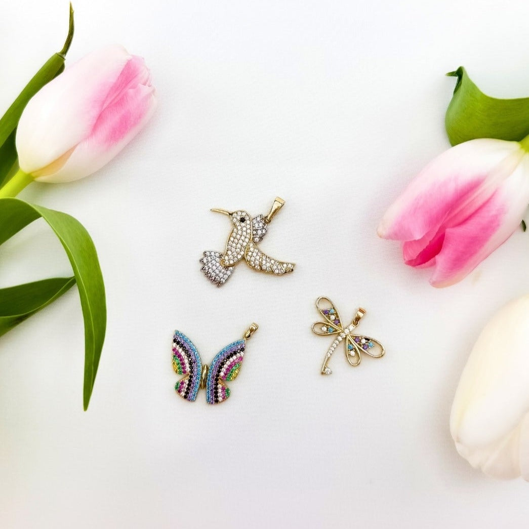 Colored Gemstones Dragonfly Pendant in 10K Gold