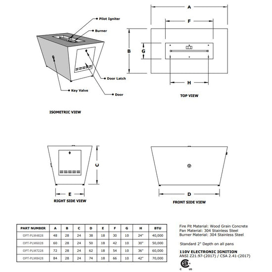 The Outdoor Plus Plymouth Rectangle 24 Tall Fire Pit - Wood Grain, 12V Electronic Ignition