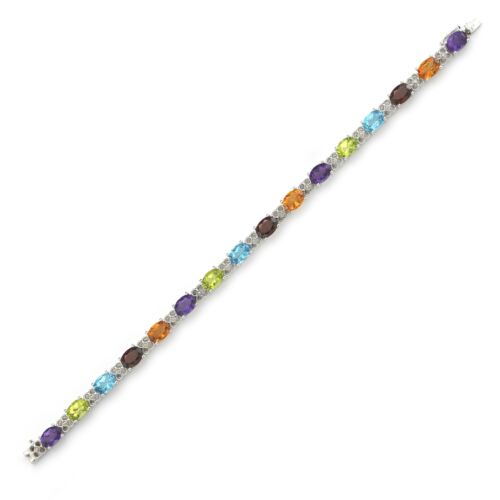 ESTATE 15.10CT AAA MULTI GEM 14KT WHITE GOLD 3D OVAL FLOWER TENNIS BRACELET