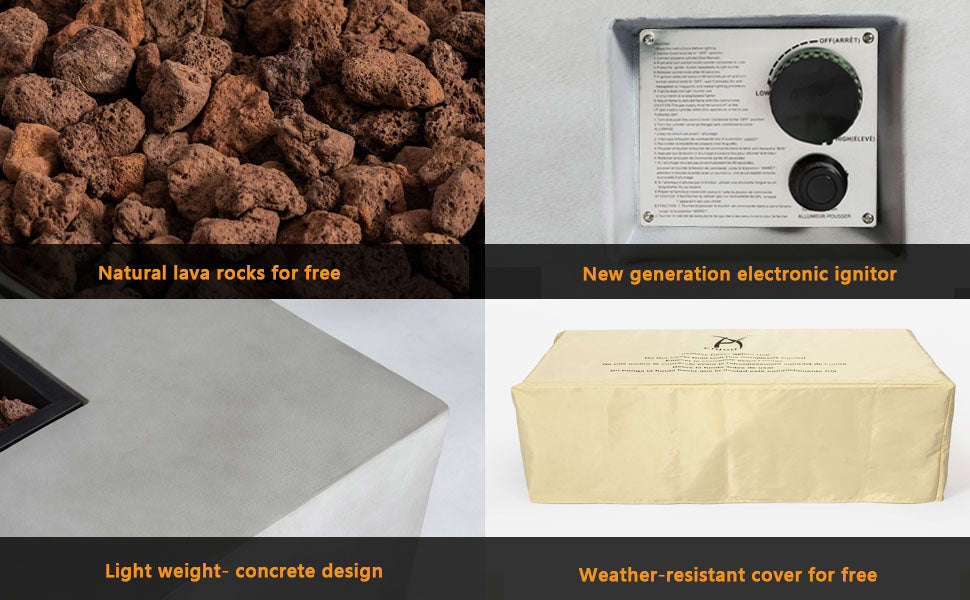 Large Rectangular Concrete Gas Fire Pit Table | 50,000 BTU Outdoor Propane Fire Pit