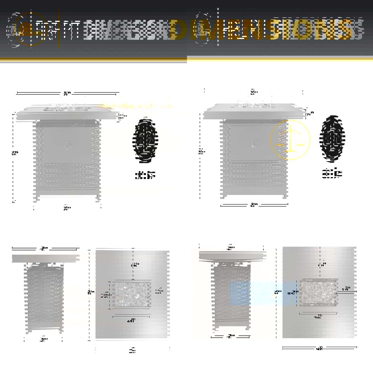 Spacious Outdoor Propane Rectangle Coffee Fire Pit Table 50,000 BTU