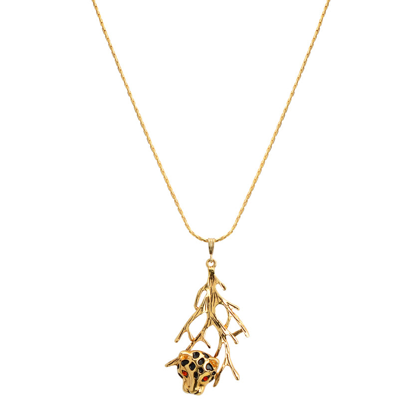 Elegant Leopard 18kt Gold Plated Sterling Silver Italian Necklace With Red Eyes - Adjustable 16-19