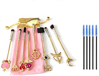 Dilla Beauty 8Pcs Sailor Moon Makeup Brushes Set with 5Pcs Blue Eyelash Brushes & Pink Fashion Bag