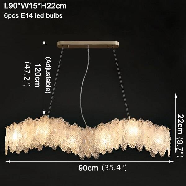 MIRODEMI® Rectangle Gold Frosted Glass Leaf Chandelier for Living Room, Bedroom, Kitchen