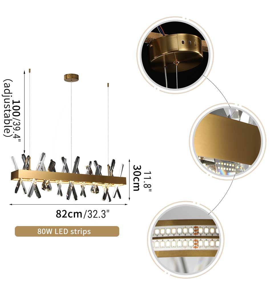 MIRODEMI® Gold Rectangle Crystal Chandelier - Modern LED Lighting for Living Room, Dining Room & Kitchen Island