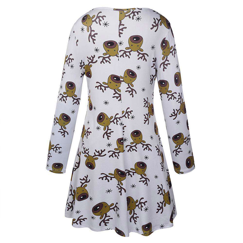 Fashion Cartoon Santa Claus Print Long Sleeve Round Neck Christmas Dresses For Women