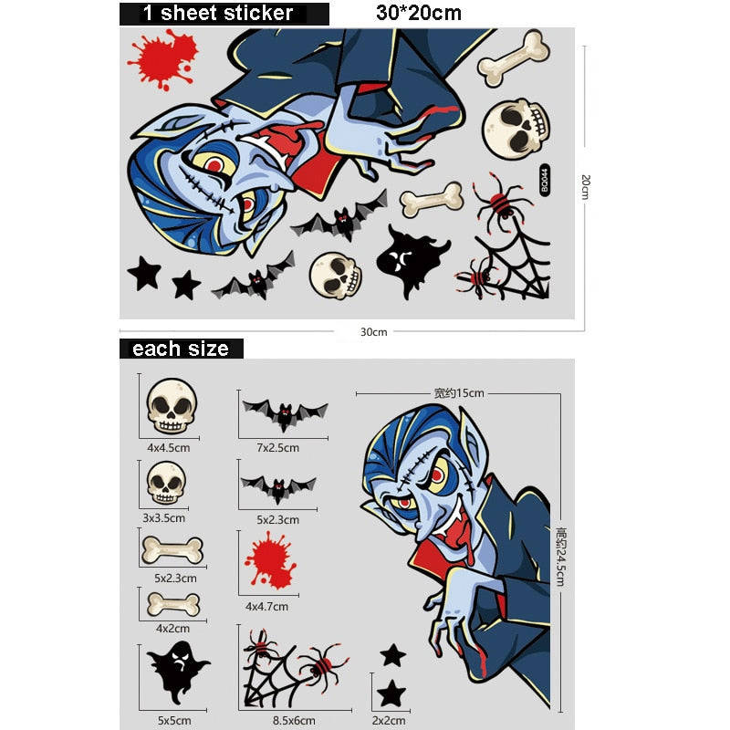 Halloween Static Window Stickers - Vampire Dracula Ghost Decals for DIY Party Decor