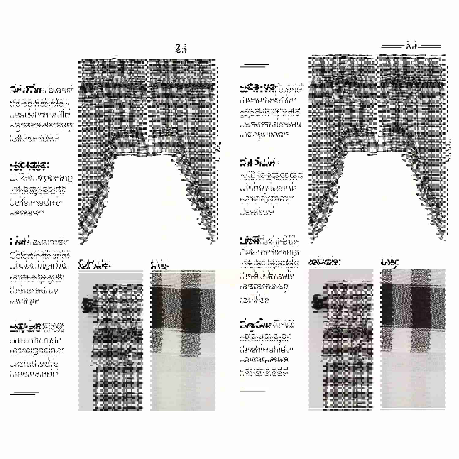 Sawyer Mill Charcoal Plaid Prairie Swag Set of 2 36x36x18