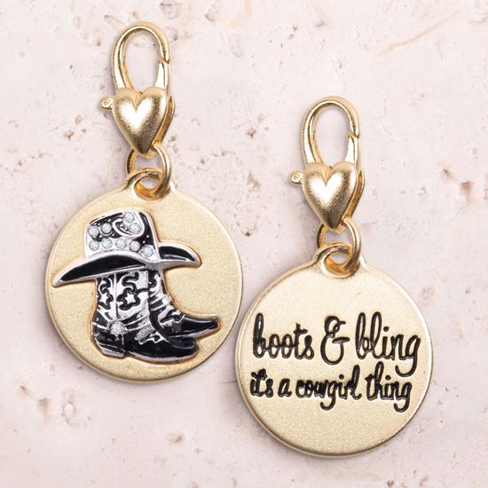 Boots and Bling Cowgirl Thing Amanda Blu Two Sides Two-tone Gold & Silver Crystals Clip-on Charm