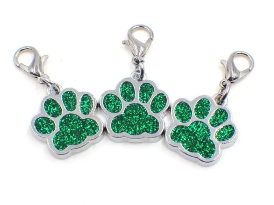 5 Pcs Colorful Glitter Dog Footprint Charm Pendant Keychain Lobster Buckle Pendant Pet Supplies Key Ring Accessories (Random Color)