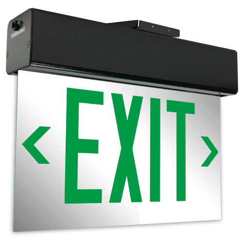 Exitronix LED Edge-Lit Exit Sign Double Face Recessed Mount Less Battery Red Letters/White Panel Universal Chevrons Brushed Aluminum Finish (903E-R-LB-RW-BA)